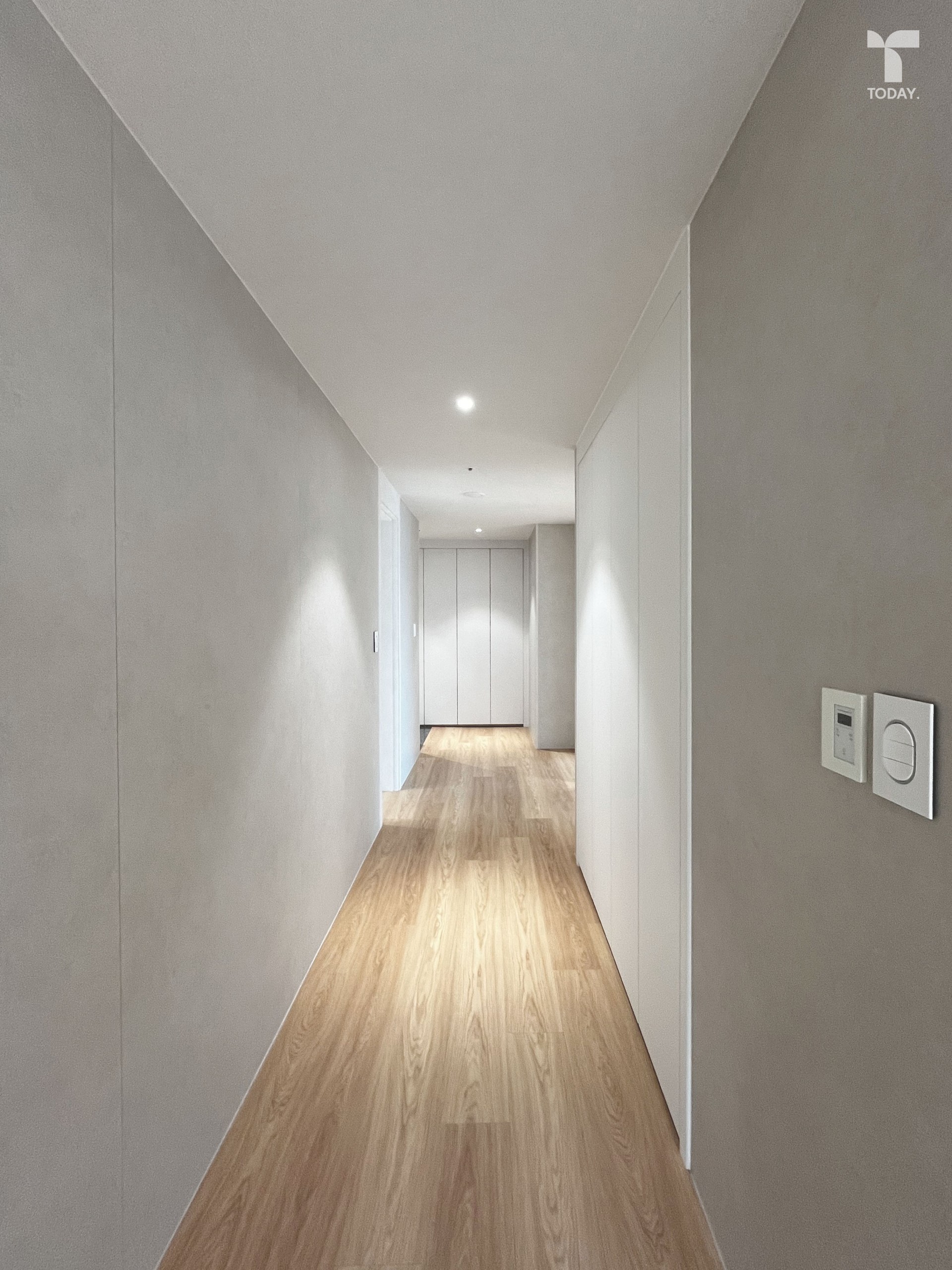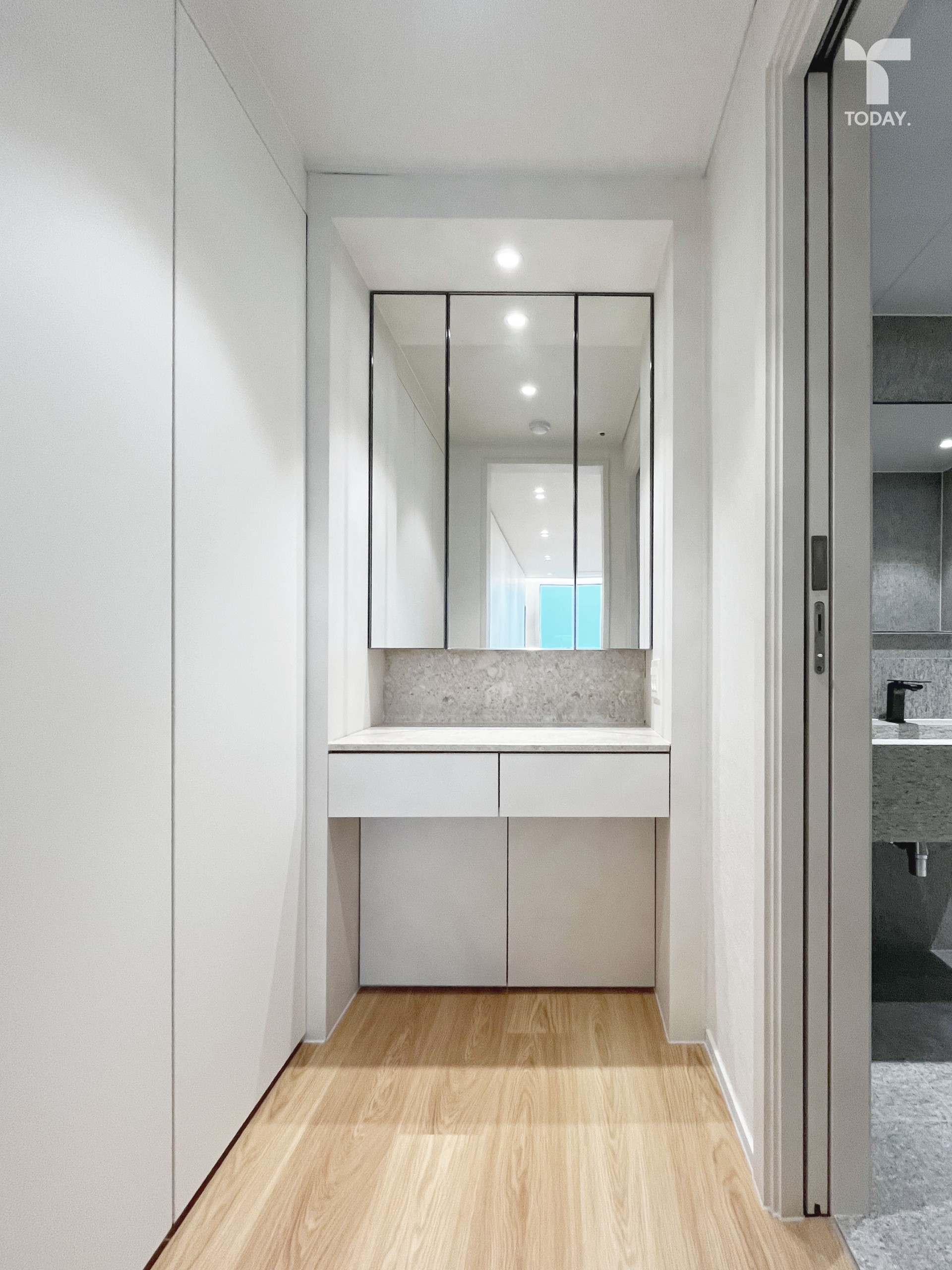 이번 프로젝트는 ‘견고함과 여백 사이’라는 컨셉으로, 공간 전반에 안정감과 절제된 고급스러움을 담아내는 데 집중하였습니다. 간결한 선과 고급스러운 디테일로 완성한 내부는 시각적인 정돈감과 함께 세련된 분위기를 전달합니다. 다크 그레이 톤의 욕실은 공간의 무게감을 조성하고, 전체 컨셉과 조화를 이루는 견고함을 표현했습니다.