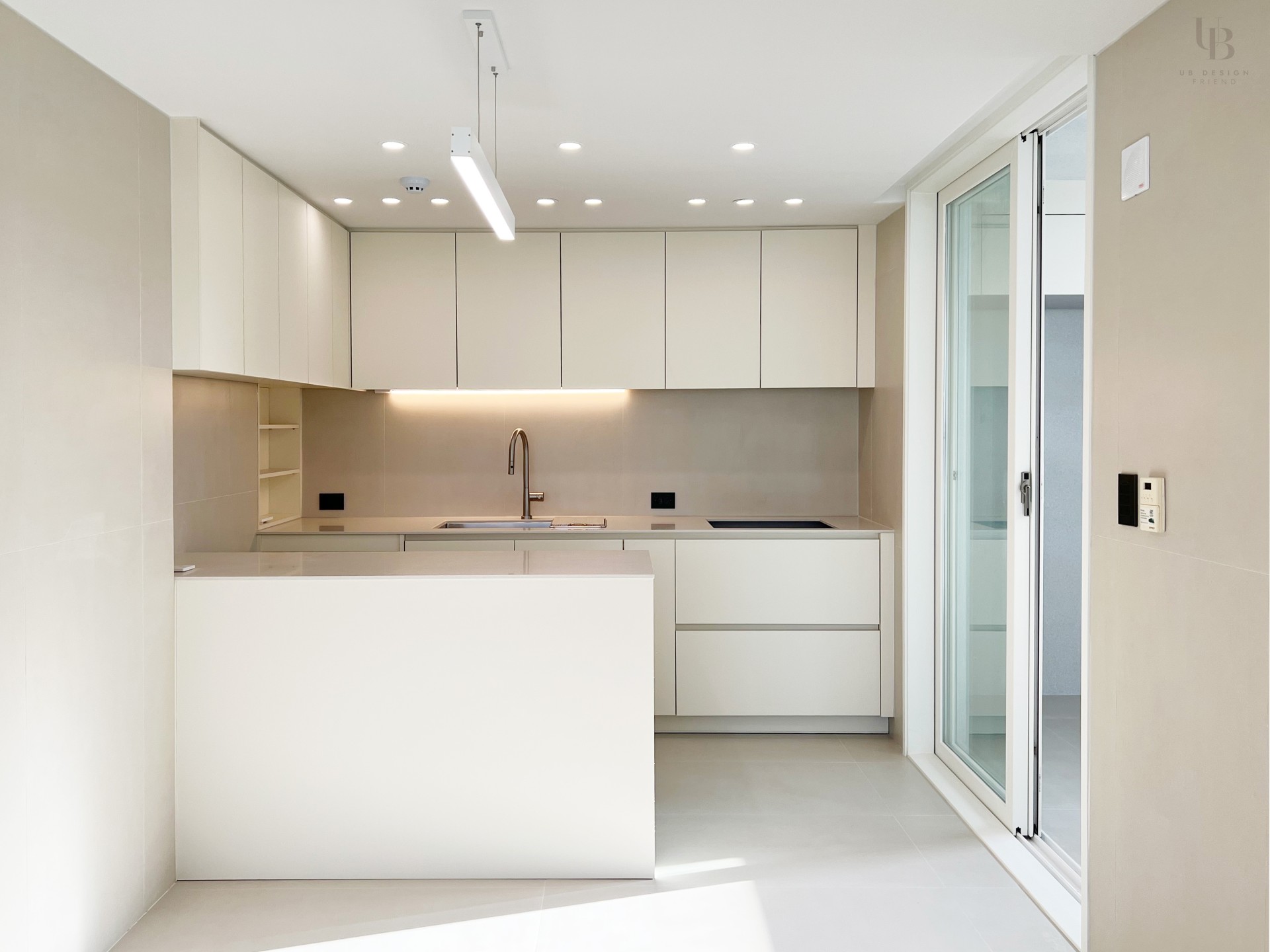 이번 프로젝트는 “단순함에서 비롯한 질서”라는 컨셉으로, 마감의 일관성을 통해 실생활에서의 편안함과 질서를 만들어내는데 집중하였습니다. 웜톤의 무채색 베이지 계열을 기반으로 바닥, 벽, 천장, 가구, 조명까지 일관된 톤앤매너를 유지하고 있으며, 전면에 드러나는 장식적 요소 없이, 매트한 텍스처를 통해 빛 반사를 줄여 차분하고 단정한 분위기를 형성했습니다.
