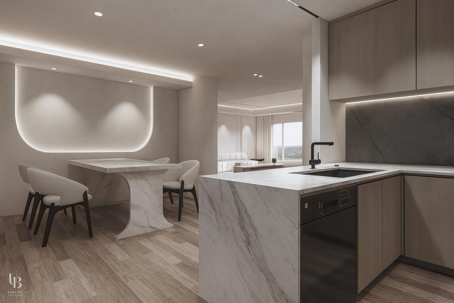 이번 프로젝트는 '모던 미니멀리즘'을 기반으로 디자인되어, 단정하면서도 고요한 분위기를 자아냅니다. 불필요한 장식 없이 핵심 요소만을 남겨, 오히려 더 깊고 세련된 완성도를 실현하였습니다. 중립톤의 색상 체계와 자연채광이 유려하게 어우러져, 시각적으로 넓고 편안한 감각을 강조하였습니다.
