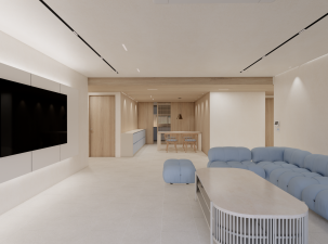 이번 프로젝트는 “단순함에서 비롯한 질서”라는 컨셉으로, 마감의 일관성을 통해 실생활에서의 편안함과 질서를 만들어내는데 집중하였습니다. 웜톤의 무채색 베이지 계열을 기반으로 바닥, 벽, 천장, 가구, 조명까지 일관된…