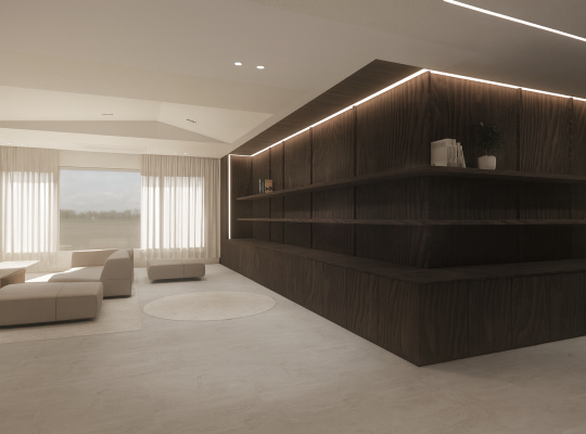 이번 프로젝트는 ‘견고함과 여백 사이’라는 컨셉으로, 공간 전반에 안정감과 절제된 고급스러움을 담아내는 데 집중하였습니다. 간결한 선과 고급스러운 디테일로 완성한 내부는 시각적인 정돈감과 함께 세련된 분위기를 전달합…