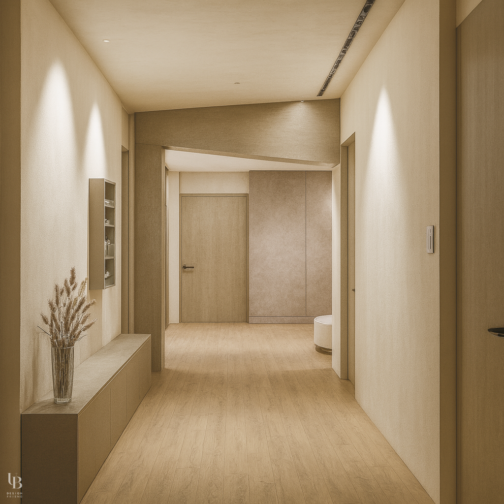 이번 프로젝트는 빛과 재질의 조화를 통해 고요함을 완성한 인테리어 디자인입니다. 단순히 소리가 사라진 상태가 아니라, 톤 다운된 컬러와 절제된 조명 디자인으로 시각적 자극이 줄어드는 순간, 차분해지는 경험을 담아낸 디자인입니다.
