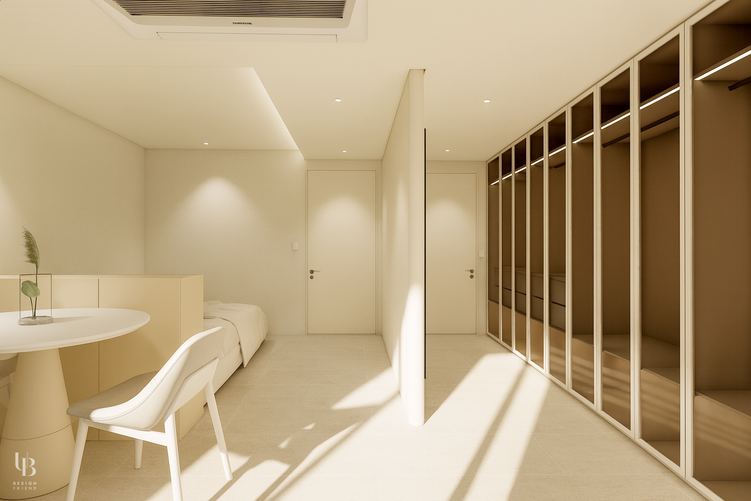 이번 프로젝트는 따뜻한 아이보리 톤과 구조적인 변화, 그리고 곳곳에 숨겨진 수납 아이디어로 작은 공간도 아늑하고 감각적인 공간으로 디자인했습니다. 밝고 웜톤의 분위기가 공간을 넓어 보이게 하고 차분하면서도 따뜻한 무드를 연출하며 일상을 포근하게 감싸는 분위기를 연출했습니다.