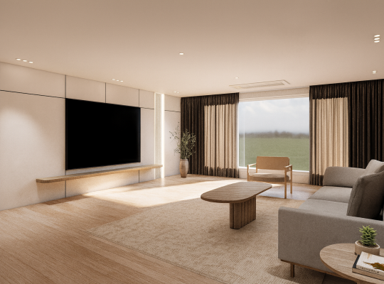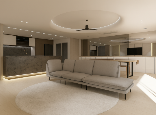 이번 프로젝트는 “단순함에서 비롯한 질서”라는 컨셉으로, 마감의 일관성을 통해 실생활에서의 편안함과 질서를 만들어내는데 집중하였습니다. 웜톤의 무채색 베이지 계열을 기반으로 바닥, 벽, 천장, 가구, 조명까지 일관된…